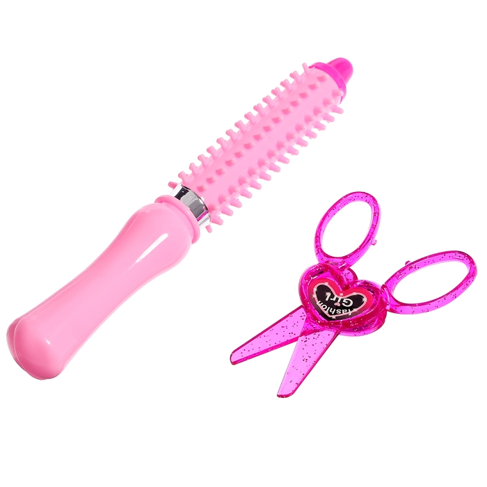 - Разнообразие аксессуаров: фен, расчёски, зеркальце, шпилька, ножницы и заколки — помогают развивать фантазию и координацию движений.