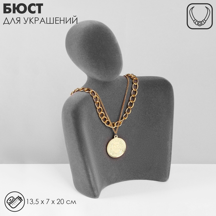 Бюст для украшений «Силуэт», 13,5×7×20 см, h=20 см, флок, цвет серый