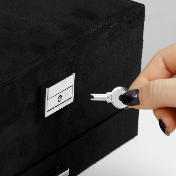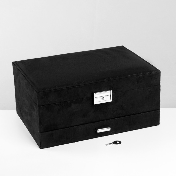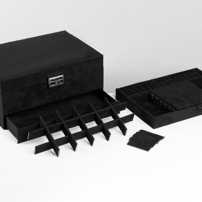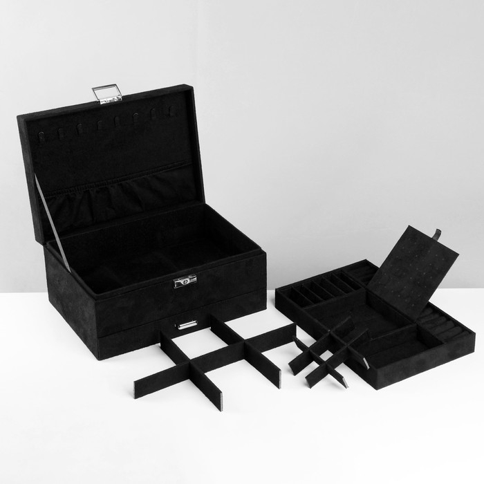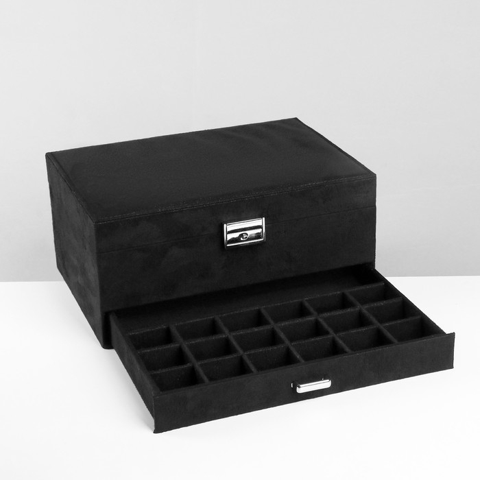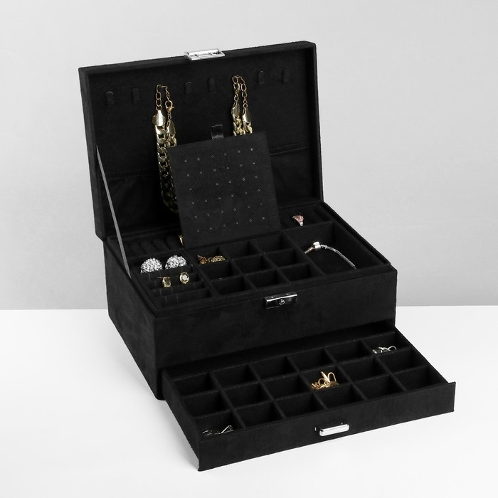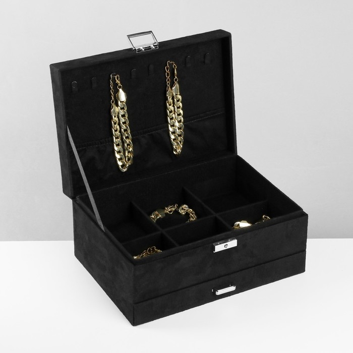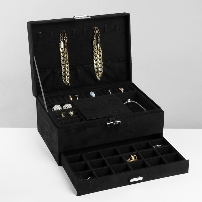 Подставка для украшений «Шкатулка» 2-х уровневая, флок, 24,5×17×12 см, цвет чёрный