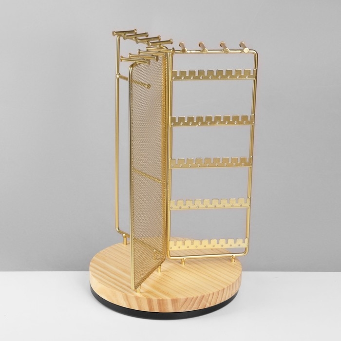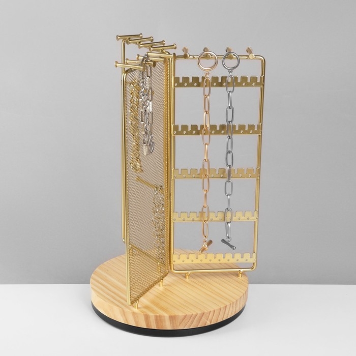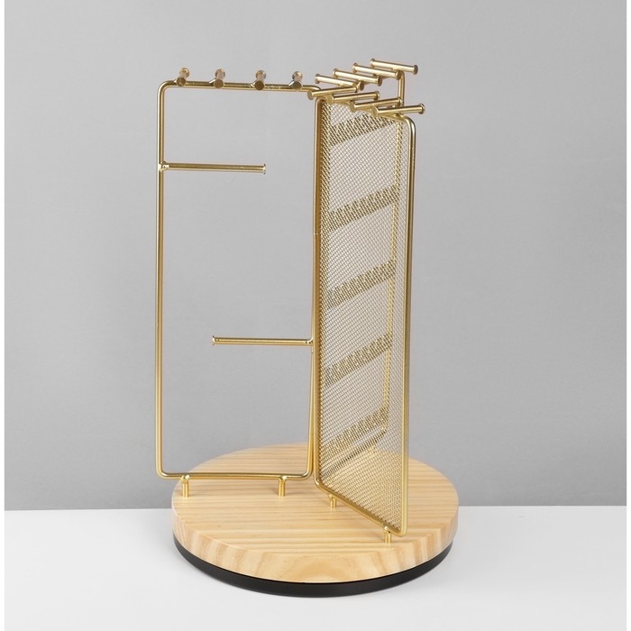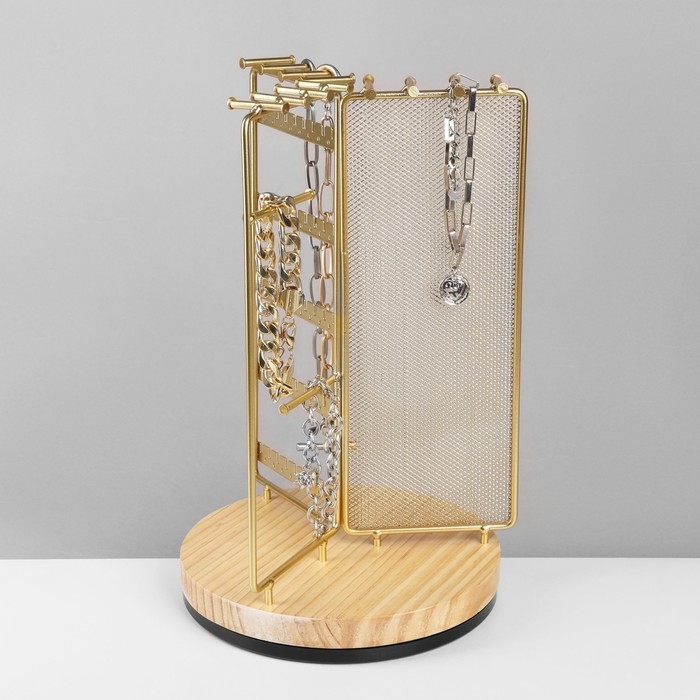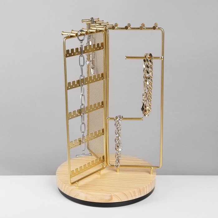 Если вы занимаетесь реализацией разнообразных украшений и аксессуаров, то вам нужно наглядно продемонстрировать свой товар, представив его в лучшем виде. Подставка для украшений универсальная «Карусель 3-х сторонняя» 18×18×30 см, цвет золото как нельзя лучше справится с этой задачей! У каждого украшения появится своё место, откуда его можно будет хорошо рассмотреть.