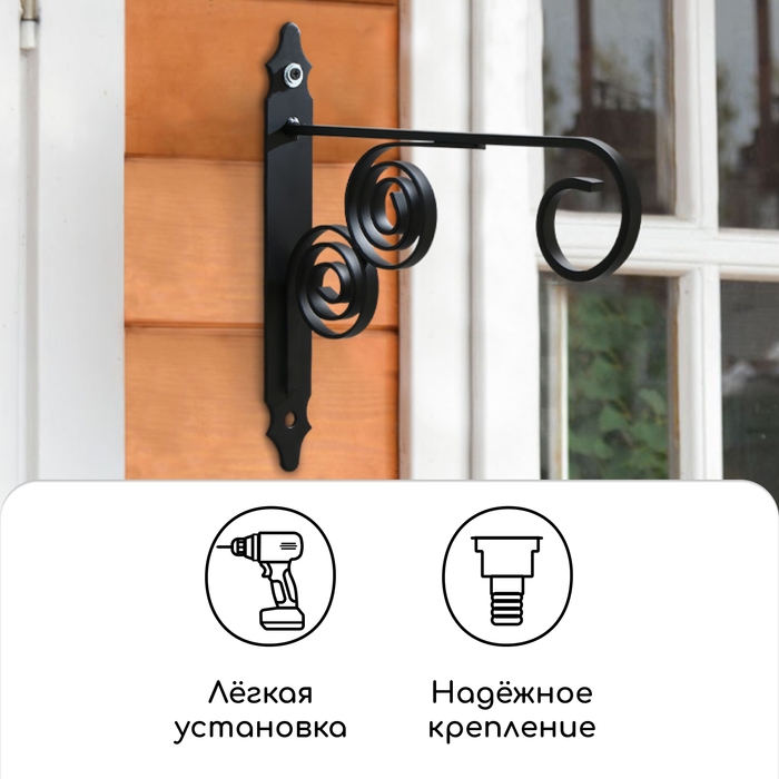 Кронштейн для кашпо кованый, 30 см, металл, чёрный