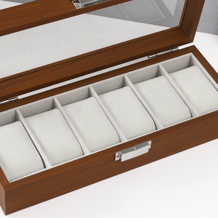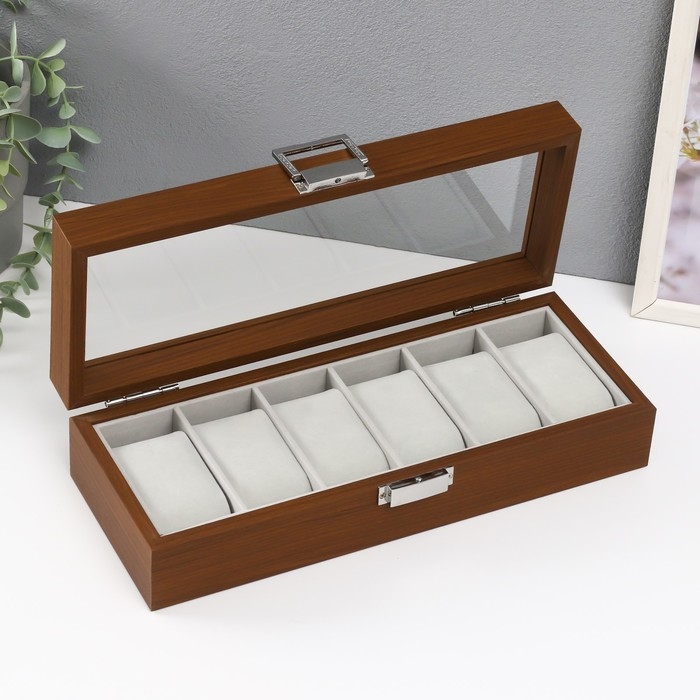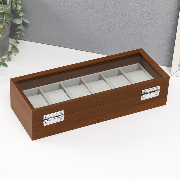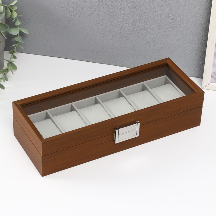 Шкатулка дерево под часы 6 отделений "Коричневая" 8х31х11 см