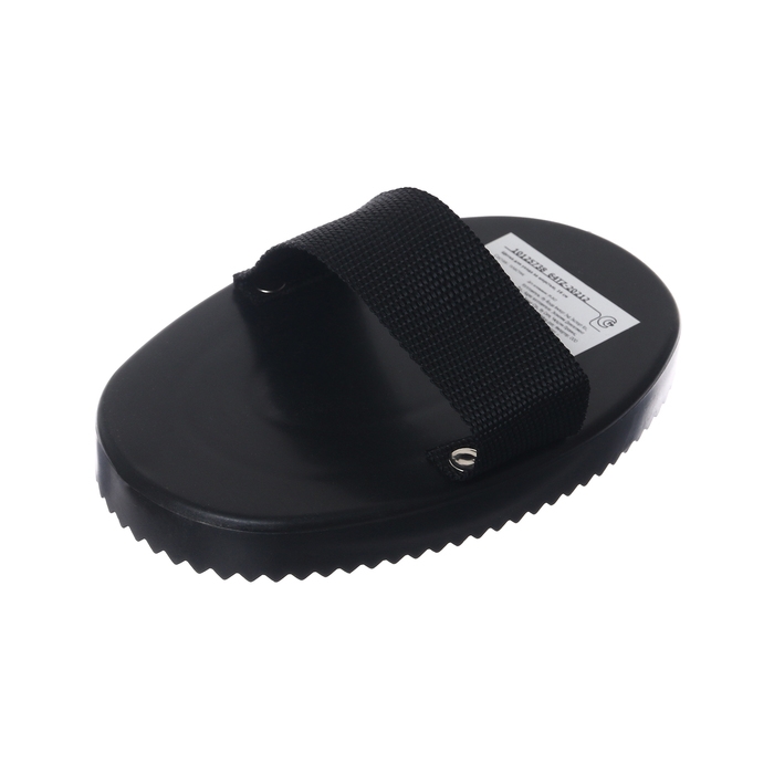 Щётка оснащена ремешком, который позволяет удобно закрепить её на руке. Массажный эффект помогает улучшить кровообращение, стимулирует рост шерсти и делает её более гладкой и блестящей. Этот инструмент идеально подходит для использования в конюшнях, на ипподромах и в домашних условиях. Он прост в использовании и уходе, долговечен и эффективен в работе.