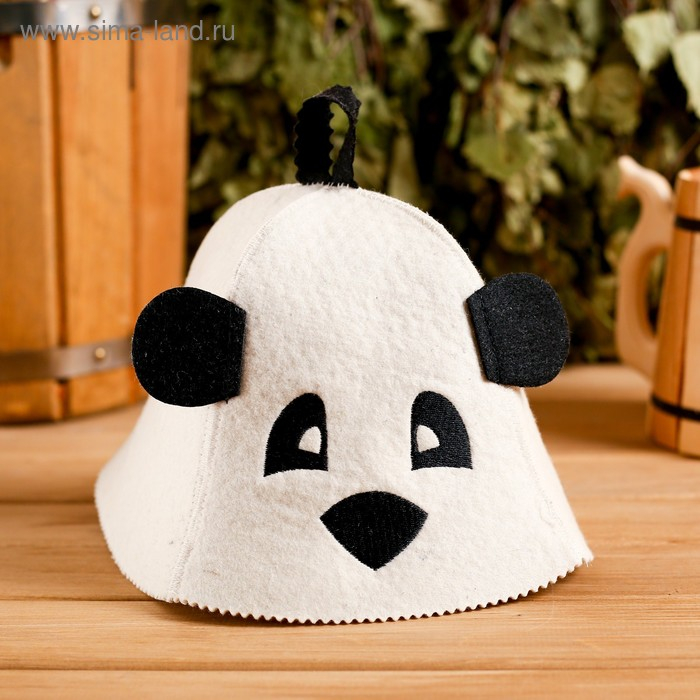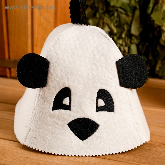Шапка для бани с детской термопечатью "Панда" с ушками, войлок, 100% шерсть
