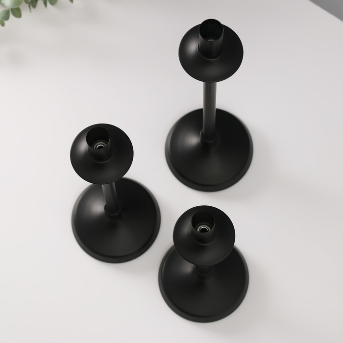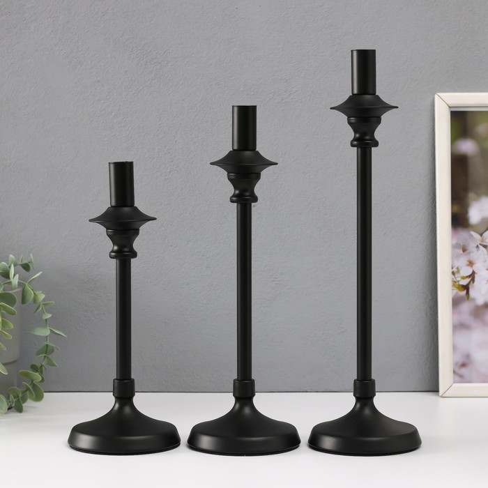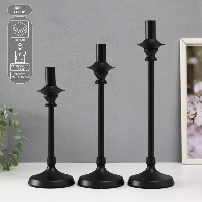 Подсвечник металл на 1 свечу "Фраген" н-р 3 шт d=2 см чёрный 10х36; 10х31; 10х26 см