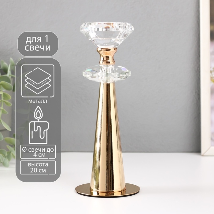 Подсвечник металл на 1 свечу d=4 см "Альфия" золото 7,5х7,5х20 см