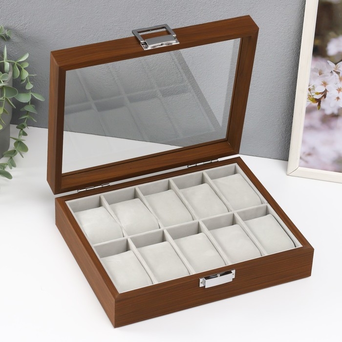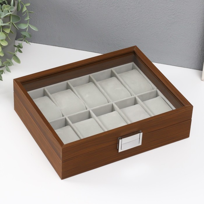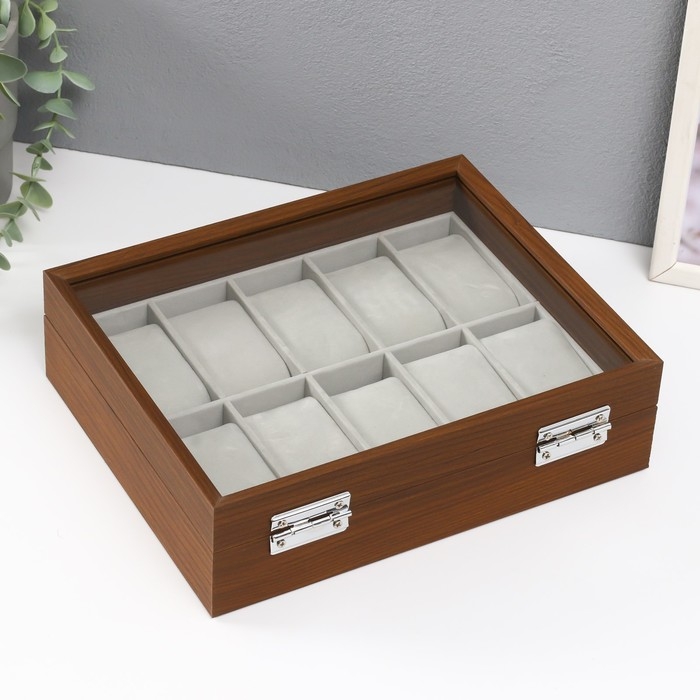 Шкатулка дерево под часы 10 отделений "Коричневая" 7,5х21х26 см