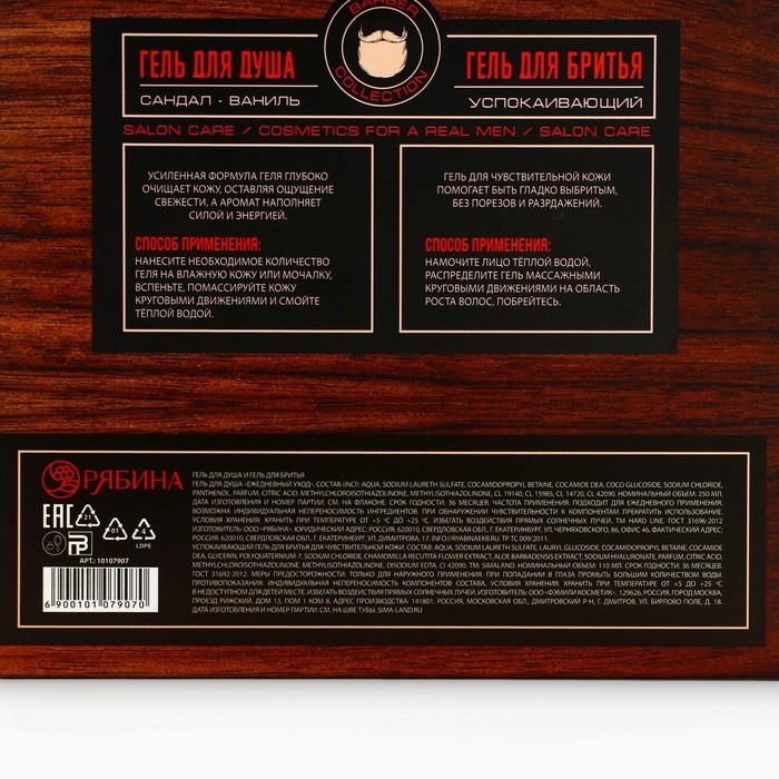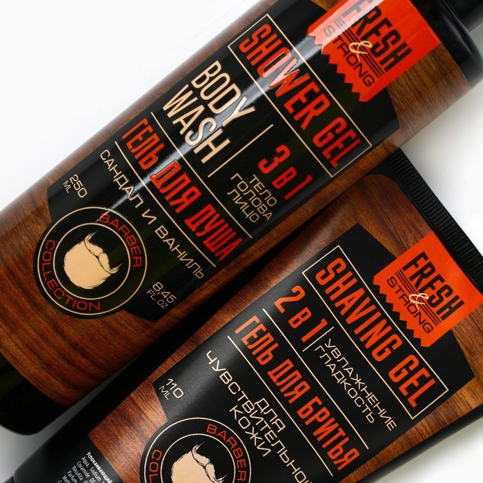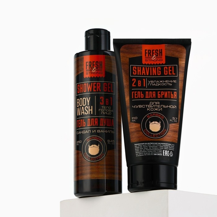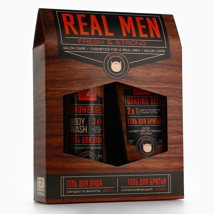 Подарочный набор косметики, гель для душа 250 мл и гель для бритья 110 мл, аромат сандала и ванили, HARD LINE