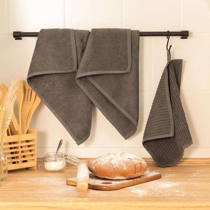 Кух. набор Этель Grey: полотенце - 4 шт, салфетка 30х30 см, 100% хл.