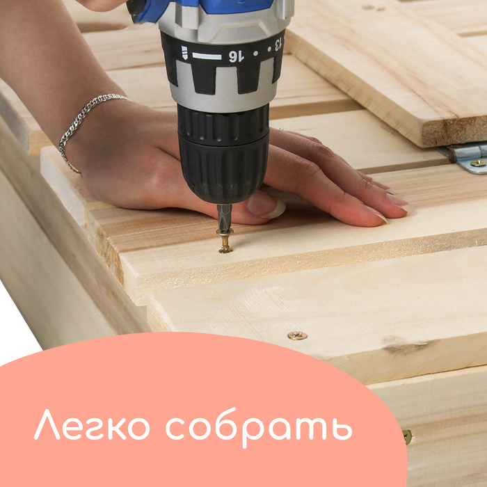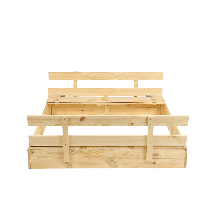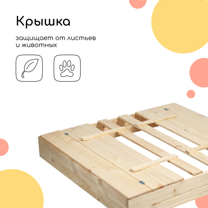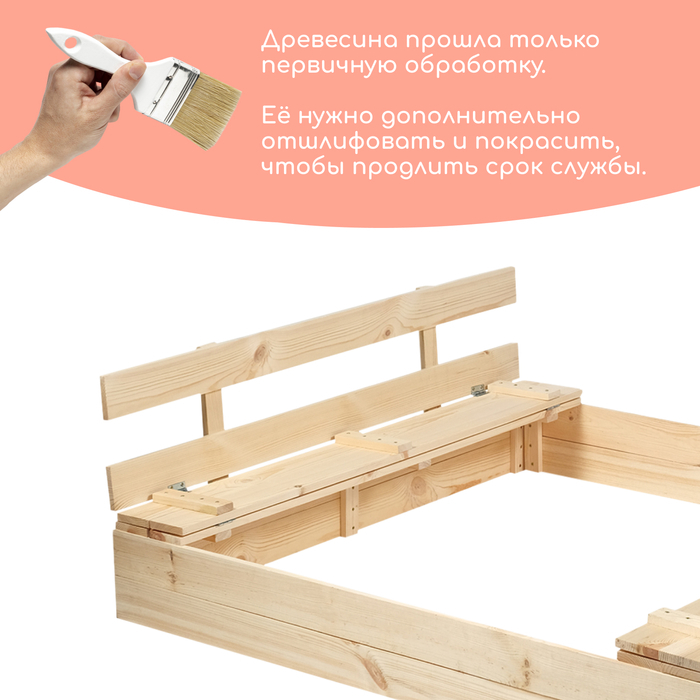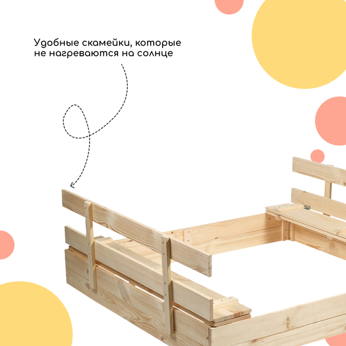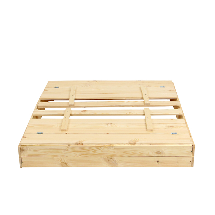 Песочница деревянная, с крышкой, 150 × 140 × 18 см, без покраски, лавочки (2 шт.), Greengo