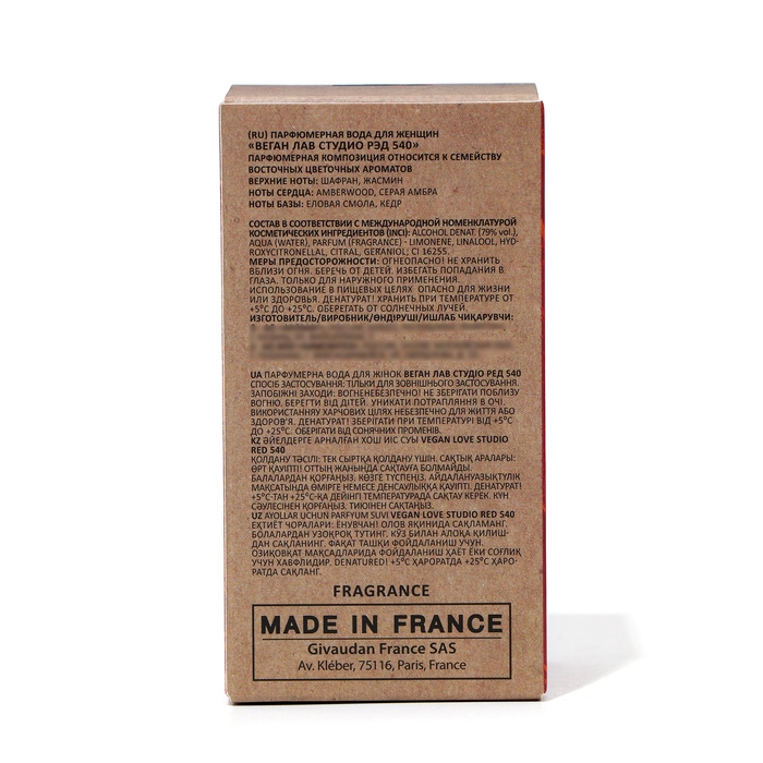 Парфюмерная вода женская Vegan Love Studio Red 540, 50 мл (по мотивам Baccarat Rouge 540 (Maison Francis Kurkdjian)