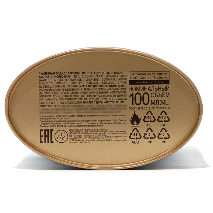 Туалетная вода мужская Club Brandy, 100 мл (по мотивам 1 Million (P.Rabanne)
