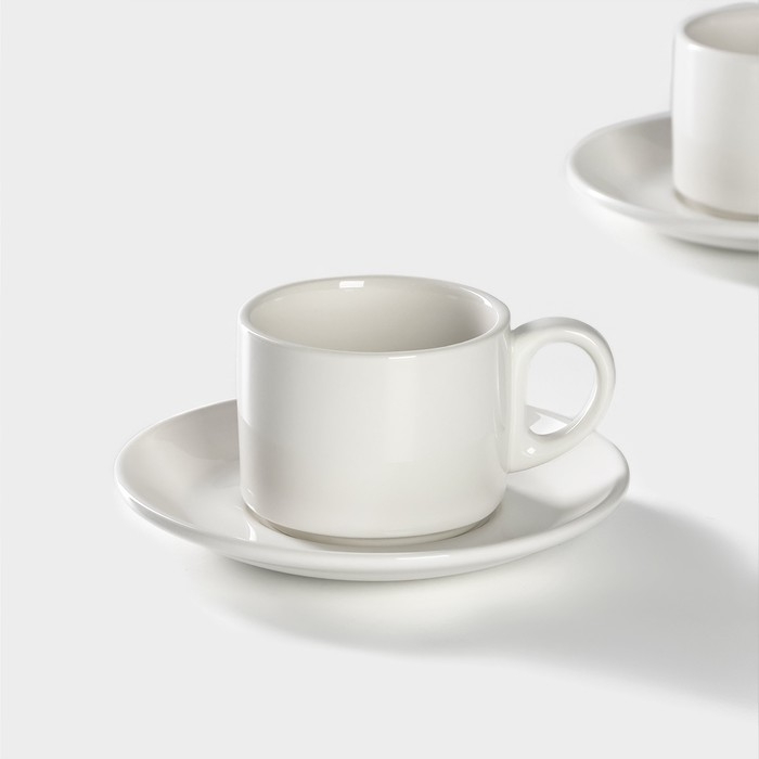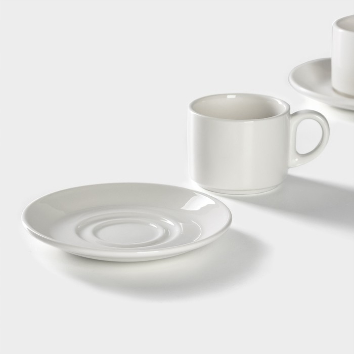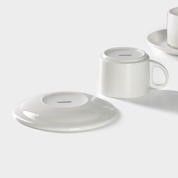 Набор чайный фарфоровый Magistro Basic bistro, 4 предмета: 2 чашки 200 мл, 2 блюдца d=15 см, цвет белый