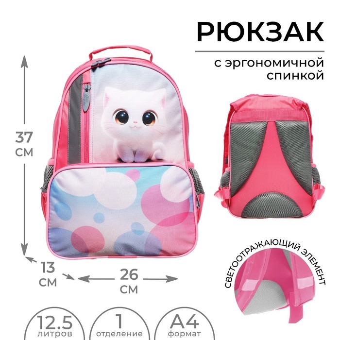 Рюкзак школьный, 37 х 26 х 13 см, эргономичная спинка, Calligrata ОРТ "Котик пушистик"