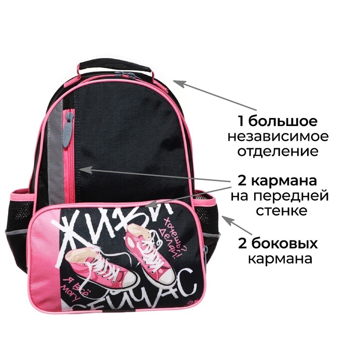 Рюкзак школьный, 37 х 26 х 13 см, эргономичная спинка, Calligrata ОРТ "Кеды"