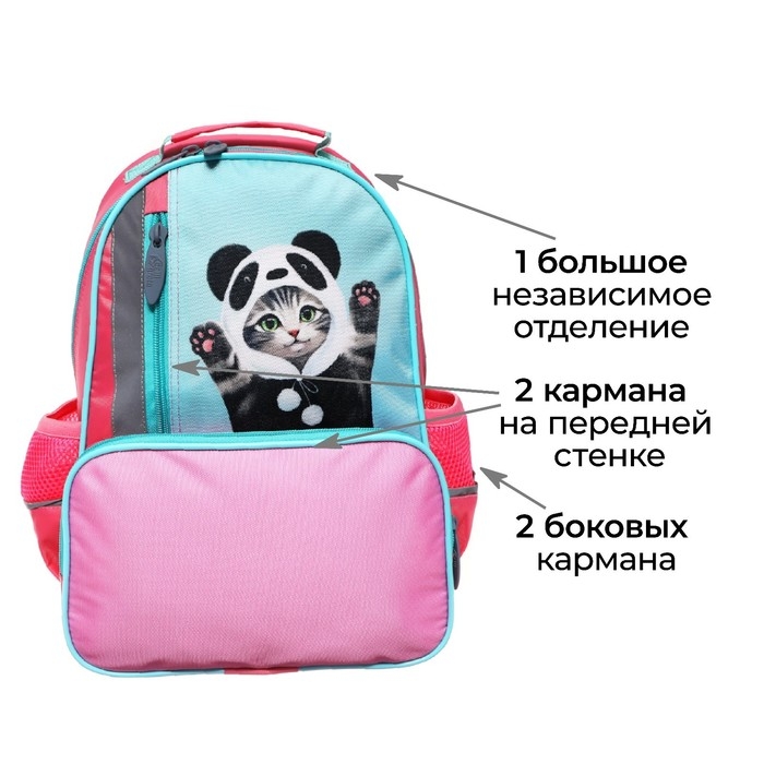 Рюкзак школьный, 37 х 26 х 13 см, эргономичная спинка, Calligrata ОРТ "Котик панда"