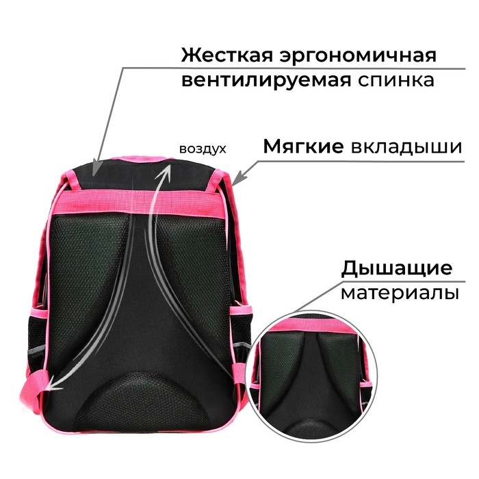 Рюкзак каркасный школьный 38 х 30 х 16 см, эргономичная спинка, Stavia "Фламинго мини", чёрный/розовый