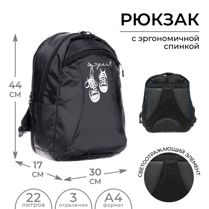 Рюкзак молодёжный, 44 х 30 х 17 см, эргономичная спинка, Calligrata Корсо "Кеды"