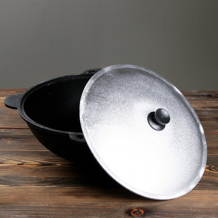 Казан чугунный, 8 л, круглое дно, алюминиевая крышка