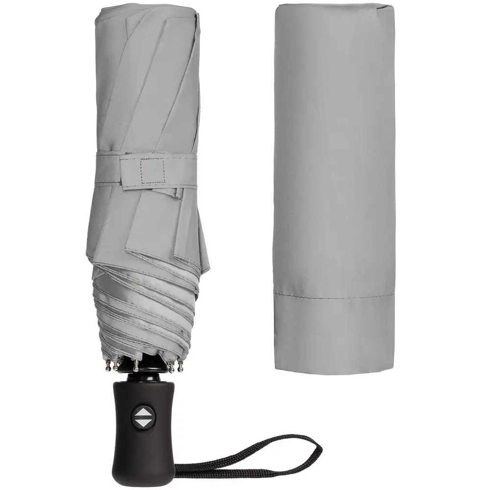 Зонт со светоотражающим куполом и пластиковой ручкой с покрытием софт-тач.