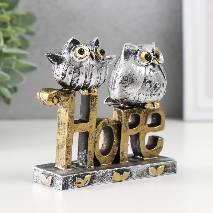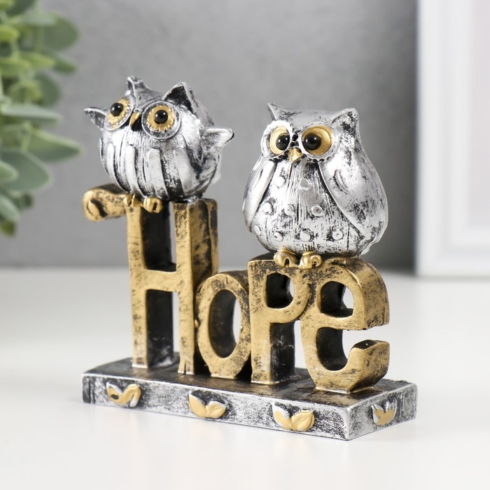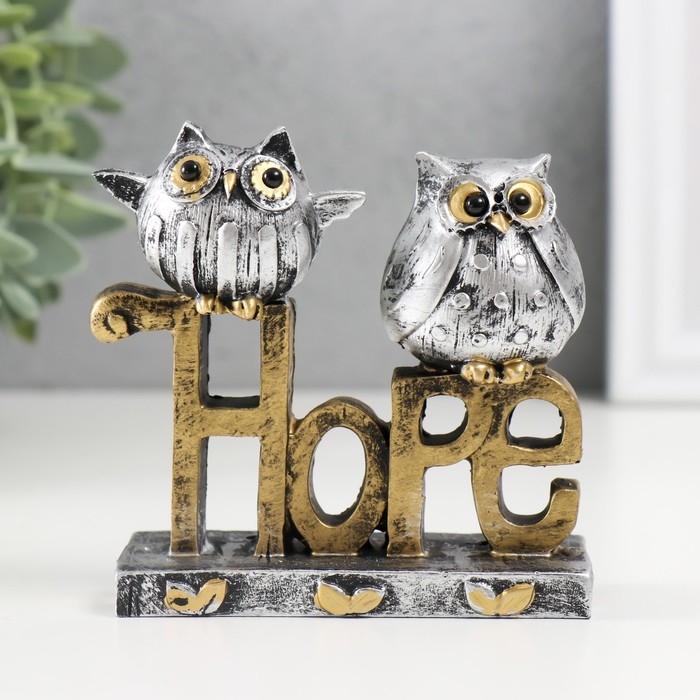 Сувенир полистоун "Две совушки на буквах. Надежда" 3,5х9,5х9,5 см