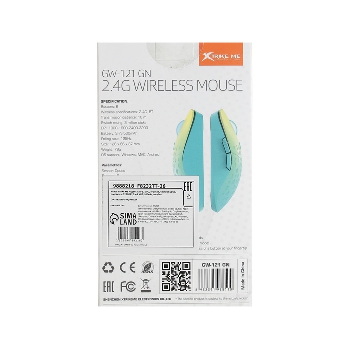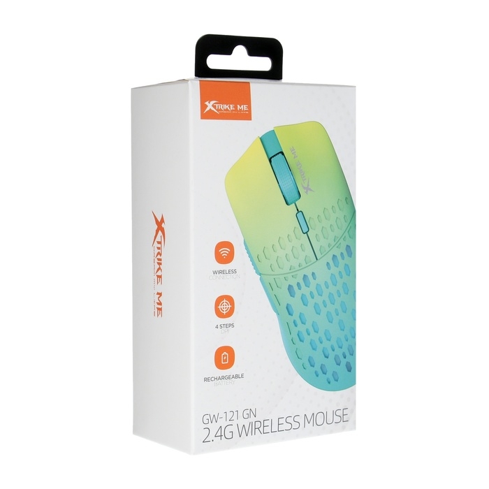 Мышь Xtrike Me GW-121 GN, игровая, беспроводная, подсветка, 3200DPI,2.4G +BT, 500мАч,голубая