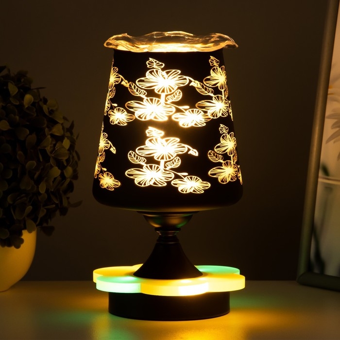 Аромалампа с подсветкой "Цветы" E14 40Вт +RGB черный 12,5х12,5х23 см