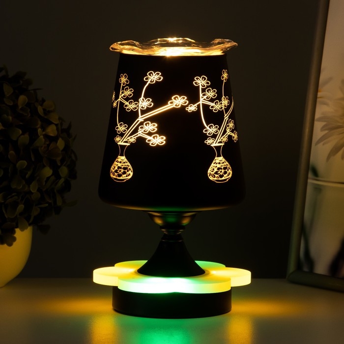 Аромалампа с подсветкой "Цветок" E14 40Вт +RGB черный 12,5х12,5х23 см