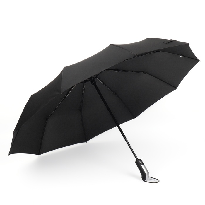 Зонт автоматический «Однотон», 3 сложения, 10 спиц, R = 50/57 см, D = 114 см, цвет чёрный