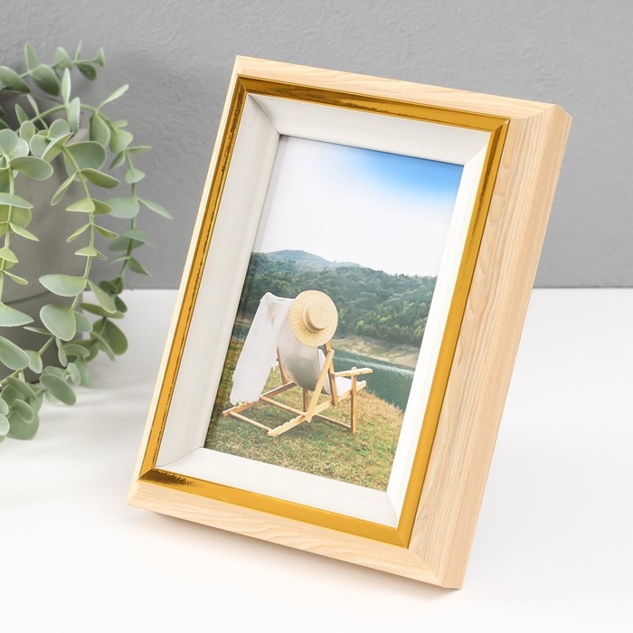Фоторамка пластик 10х15 см "Стефания" светлое дерево с белым 4,4х15х20 см