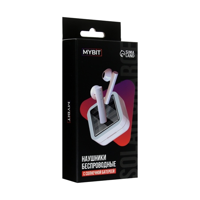 Наушники беспроводные MYBIT VBT 1.18, TWS, вкладыши, BT5.0, 30/200 мАч, солнечная панель, белые
