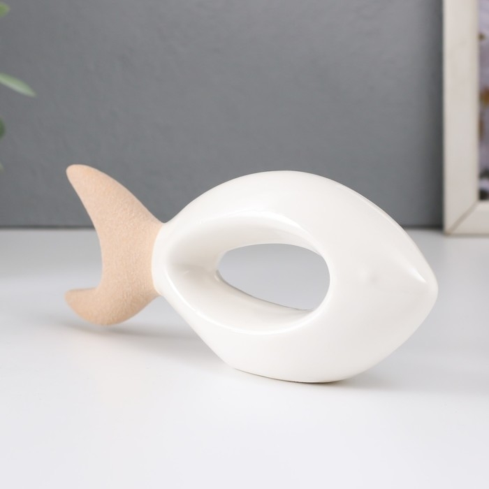 Сувенир керамика "Рыбка" песочно-белая 17х3,8х5,8 см