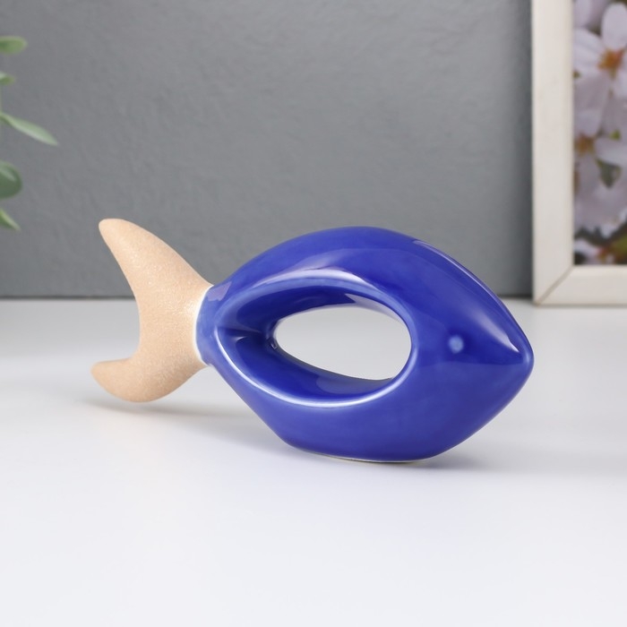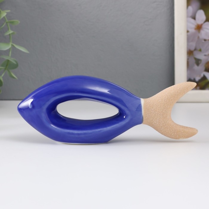 Сувенир керамика "Рыбка" песочно-синяя 17х3,8х5,8 см