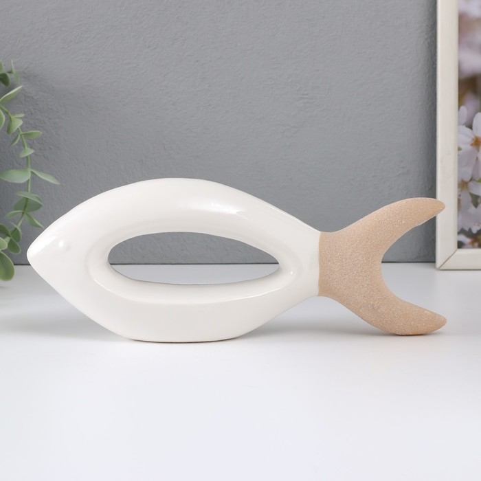 Сувенир керамика "Рыбка" песочно-белая 24,5х5,5х9,5 см