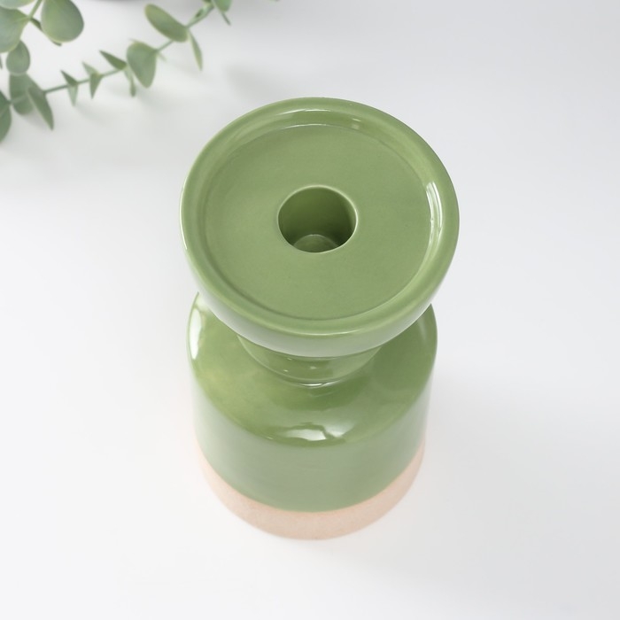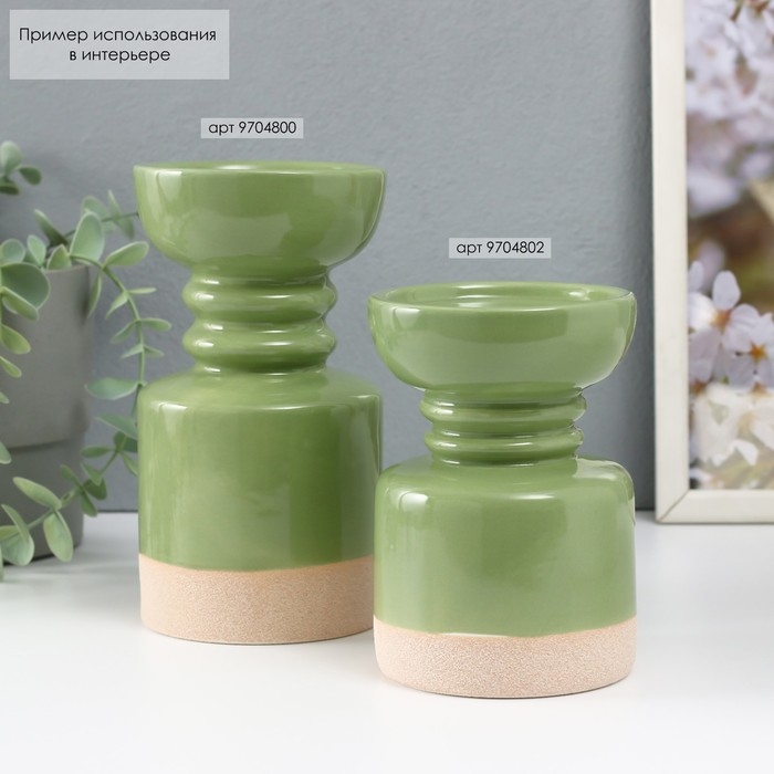 Подсвечник керамика на 1 свечу "Атлант" песочно-зелёный 9,5х9,5х17,5 см