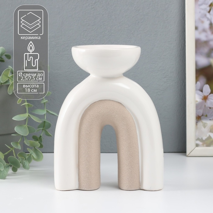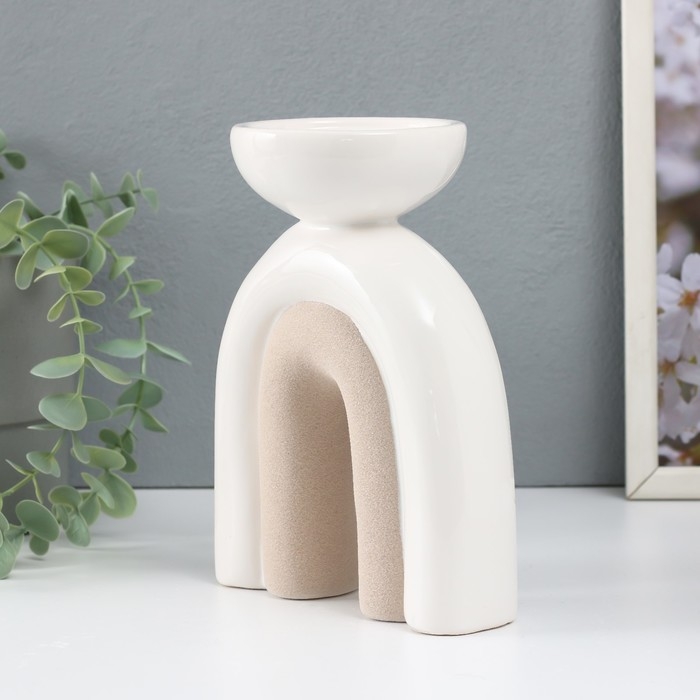 Подсвечник керамика на 1 свечу "Медуза" песочно-белый 13,5х8,7х18 см