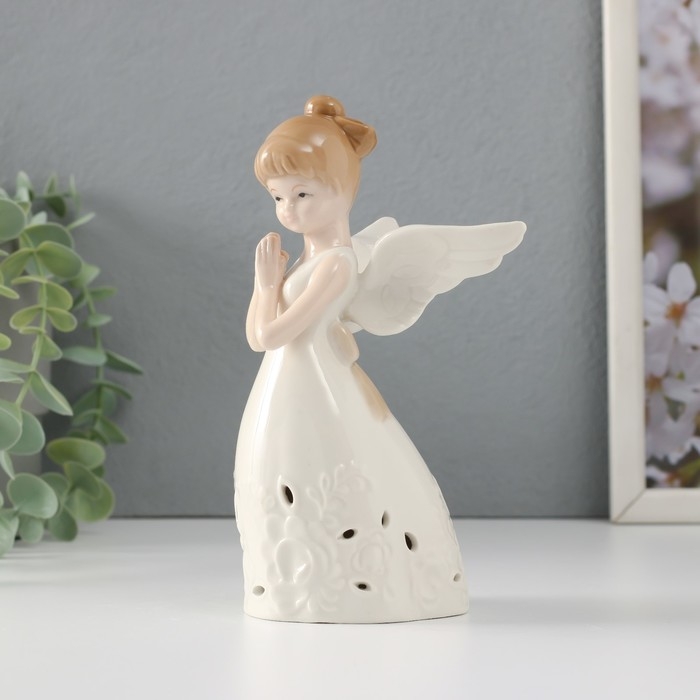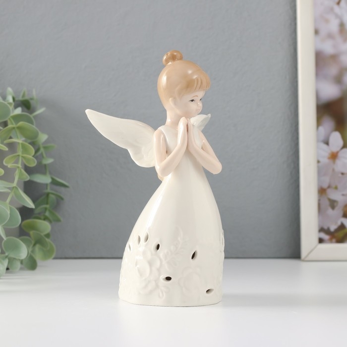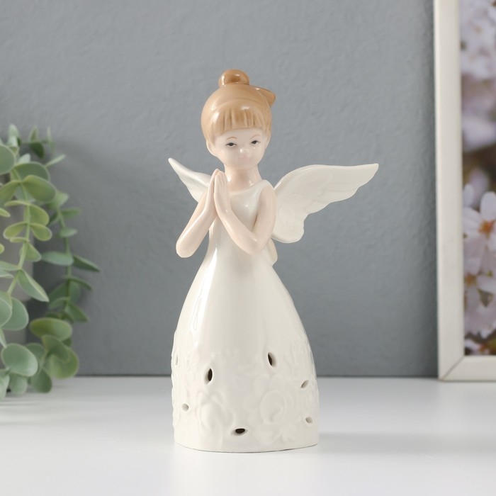 Сувенир керамика свет "Девочка-ангел со сложенными руками" от батареек 9,5х9,5х16,5 см