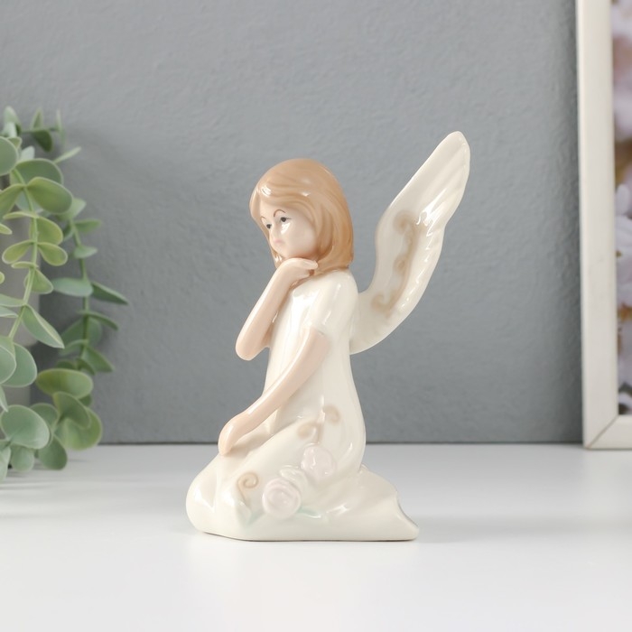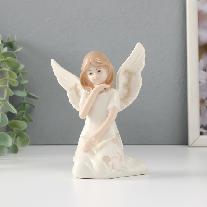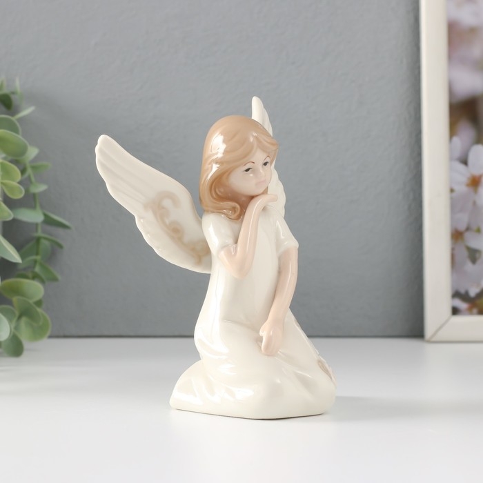 Сувенир керамика "Девочка-ангел в белом платье с узорами сидит" 10х7х13 см