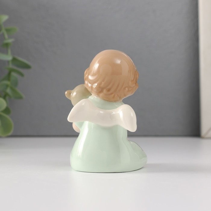 Сувенир керамика "Малышка-ангел с мягким медвежонком" 5,5х5х8,5 см