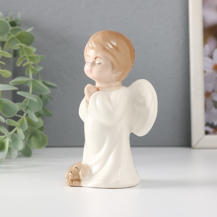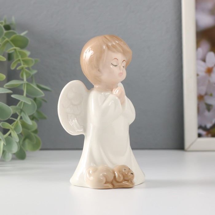 Сувенир керамика "Малыш-ангел со спящим щенком молится" 7,5х5,7х12 см