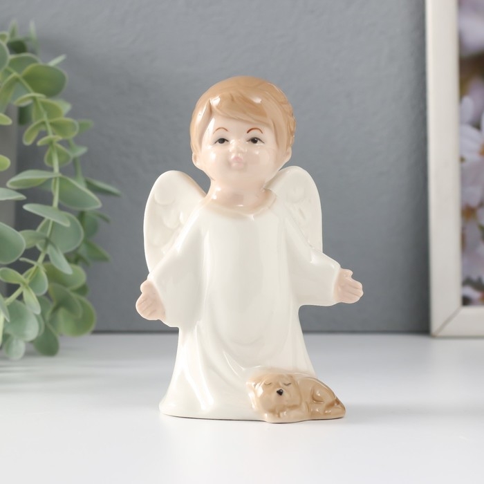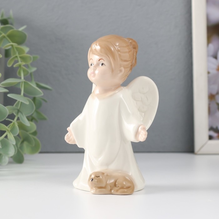 Сувенир керамика "Девочка-ангел со спящим котом" 6,5х5,5х11,5 см