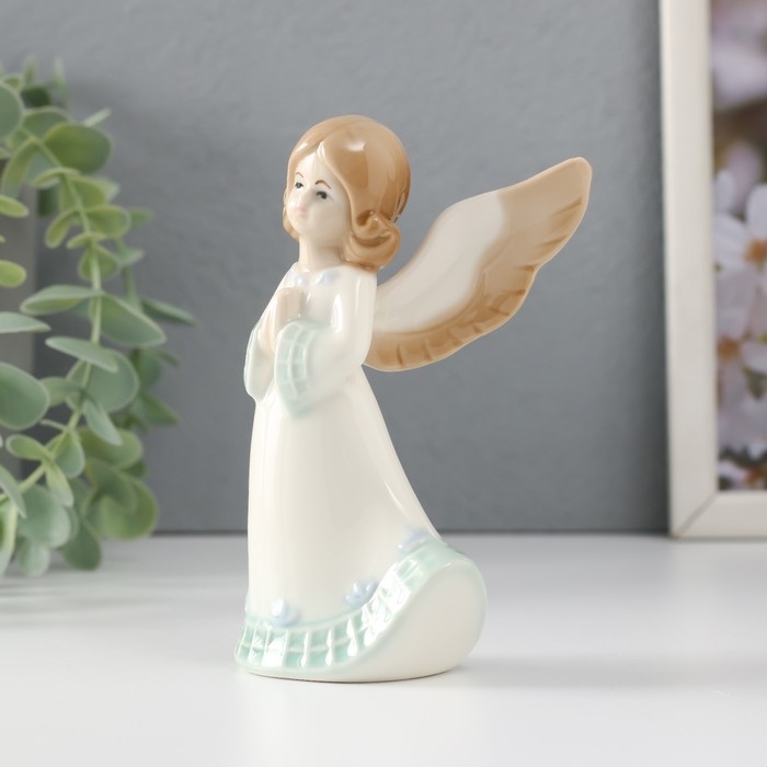 Сувенир керамика "Девочка-ангел в платье с клеткой молится" 9х6х12 см