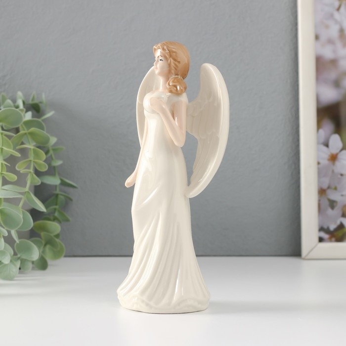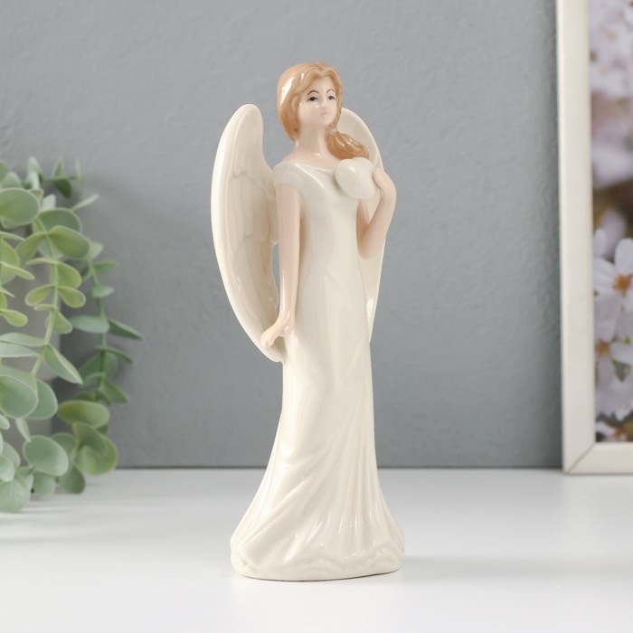 Сувенир керамика "Девушка-ангел в белом платье с сердцем в руке" 8,5х6,2х18 см