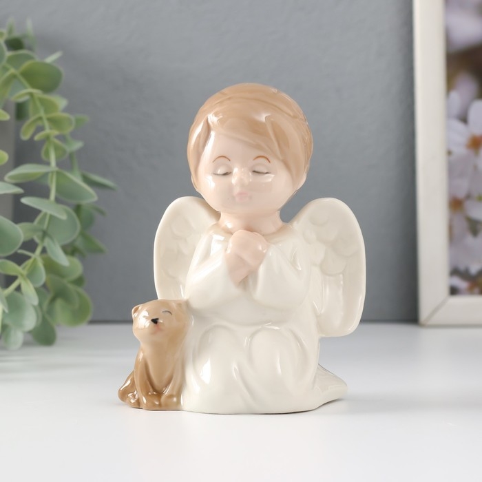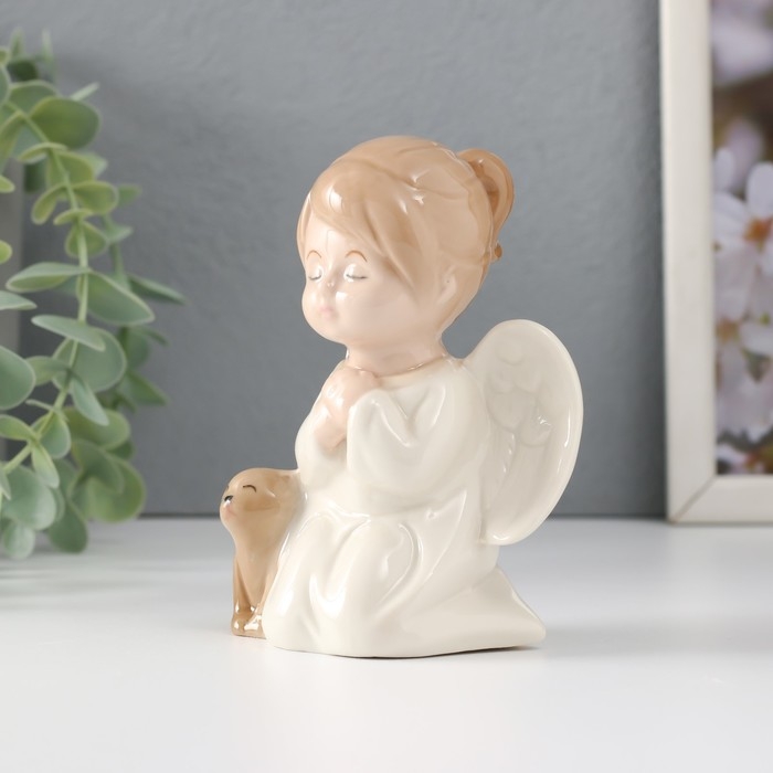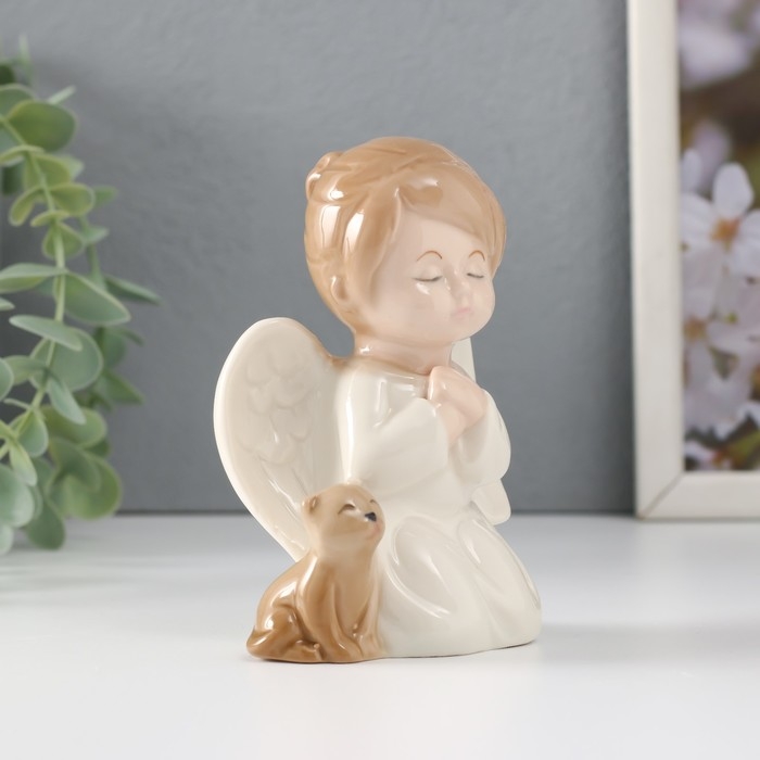 Сувенир керамика "Девочка-ангел с котёнком молится" 8х6х11,5 см