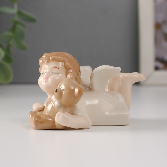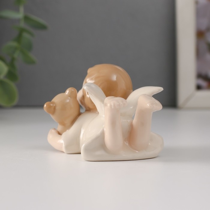 Сувенир керамика "Малышка-ангел лежит с медвежонком" 8,5х4,8х5 см