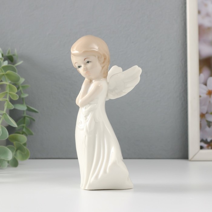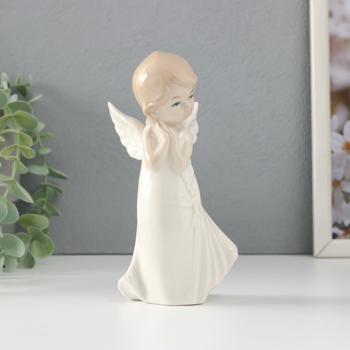 Сувенир керамика "Девочка-ангел в платье с узорами со сложенными руками" 6х8х16,5 см