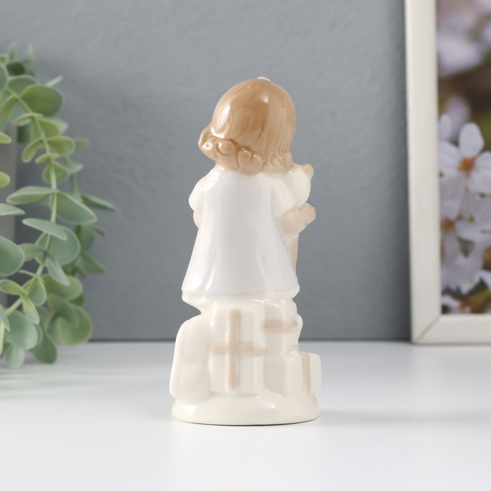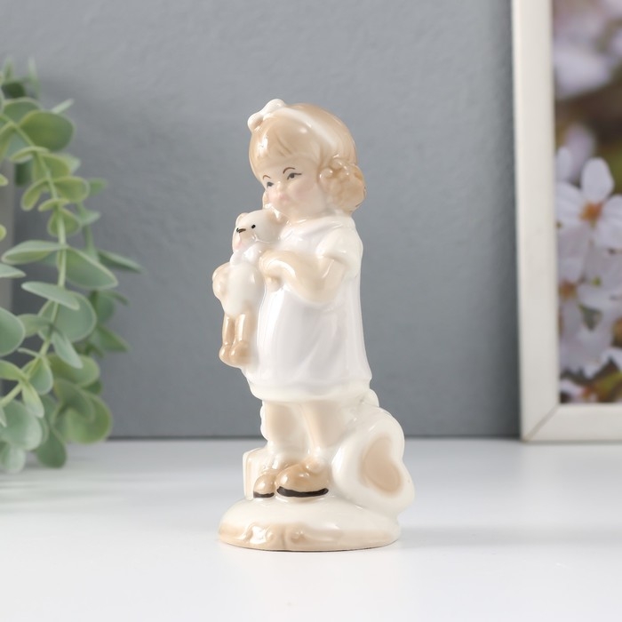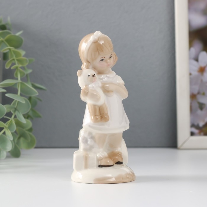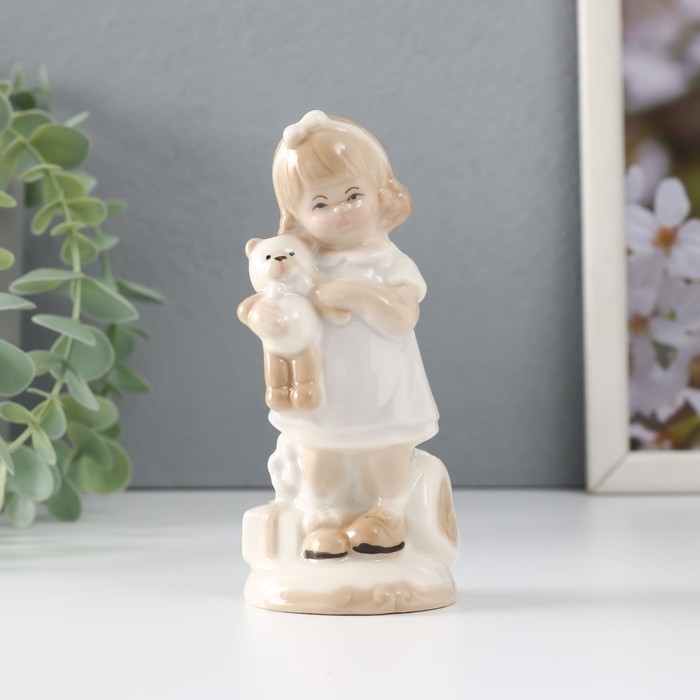 Сувенир керамика "Девочка в платьице, держит мягкого медведя" 5,5х5х12,5 см