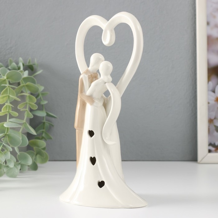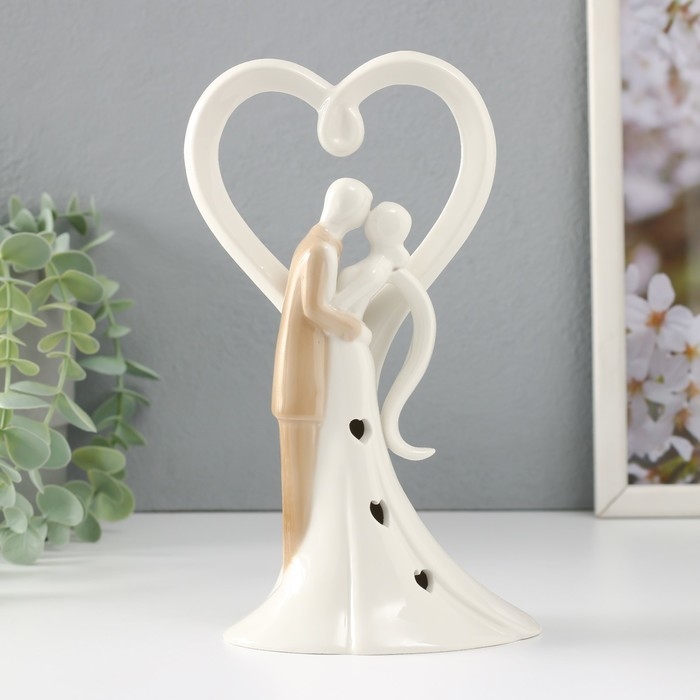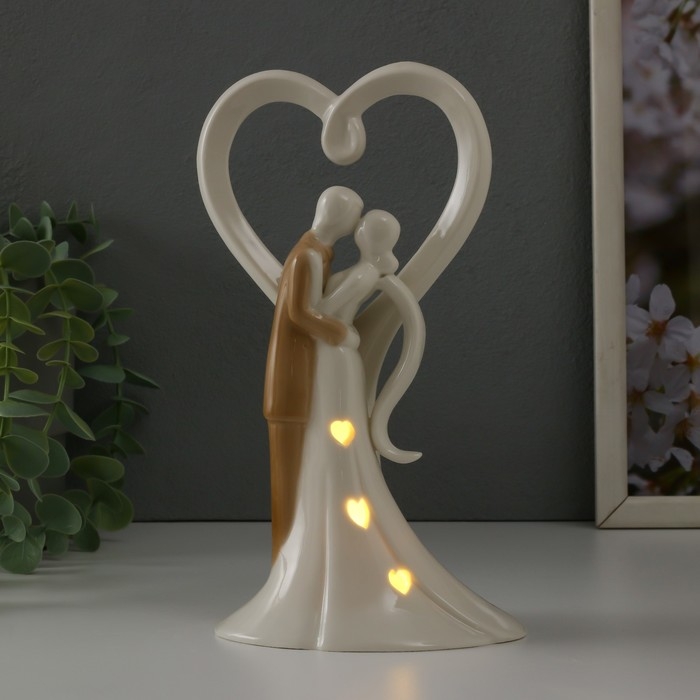 Сувенир керамика свет "Абстракция. Влюблённые, поцелуй у большого сердца" 11х8,5х20,5 см