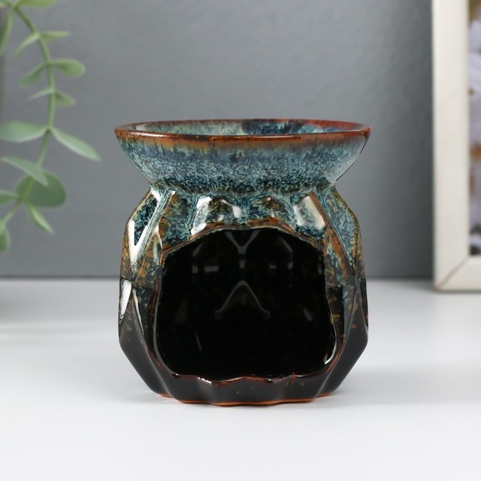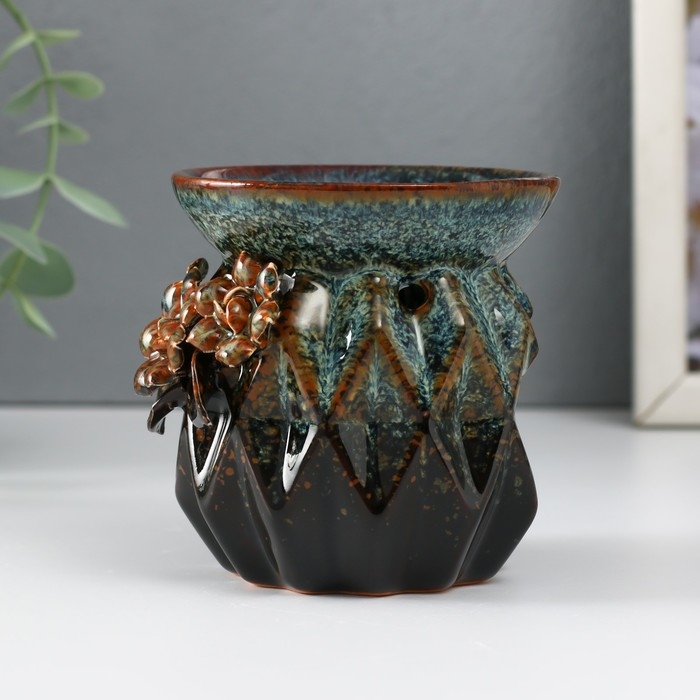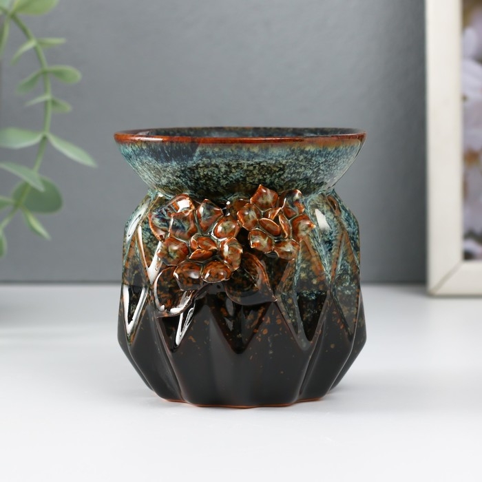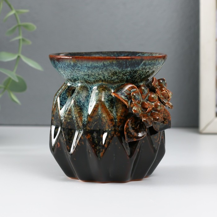 Аромалампа керамика "Узоры и рельеф" коричневая 8х8х8,4 см