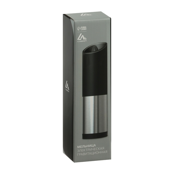 Мельница электрическая Luazon LET-004, гравитационная, металл, от батареек, серебристая